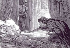 The story had been reprinted many times and has been the basis of several other books and several films. The iconic image below of Carmilla approaching a sleeping Laura, with Laura’s father watching in the background, was drawn by David Henry Friston, and first appeared in the magazine The Dark Blue in 1871. This image has been reprinted many times.