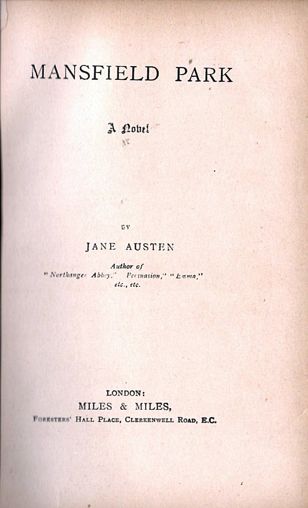In the previous two posts, we examined the identity and provenance of the two editions of Mansfield Park, both published by Routledge, shown in the left hand and central panel of Figure 1 below. In this blog I am examining the Miles and Miles edition shown in the right hand panel of Figure 1, which was established in Price and Provenance 2 to be published between 1900 and 1906.