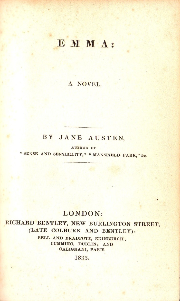 Reprints of the Bentley 1833 edition of Emma (Gilson D7)
