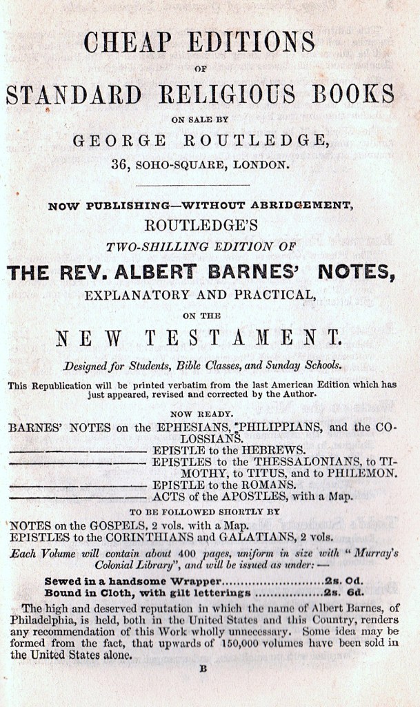 All these three reprinted editions also contain the original engraved frontispiece from 1833. The 1836 and 1856 editions also contain the engraved title page that was first published in the 1833 edition, shown in Figure 1 above. The engraved pages all still show the date 1833.