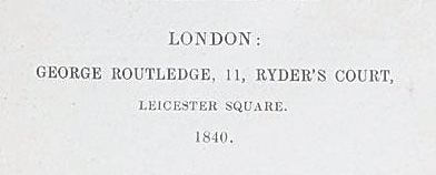 • 1836-1843 George Routledge (11) Ryders Court, Leicester Square, London