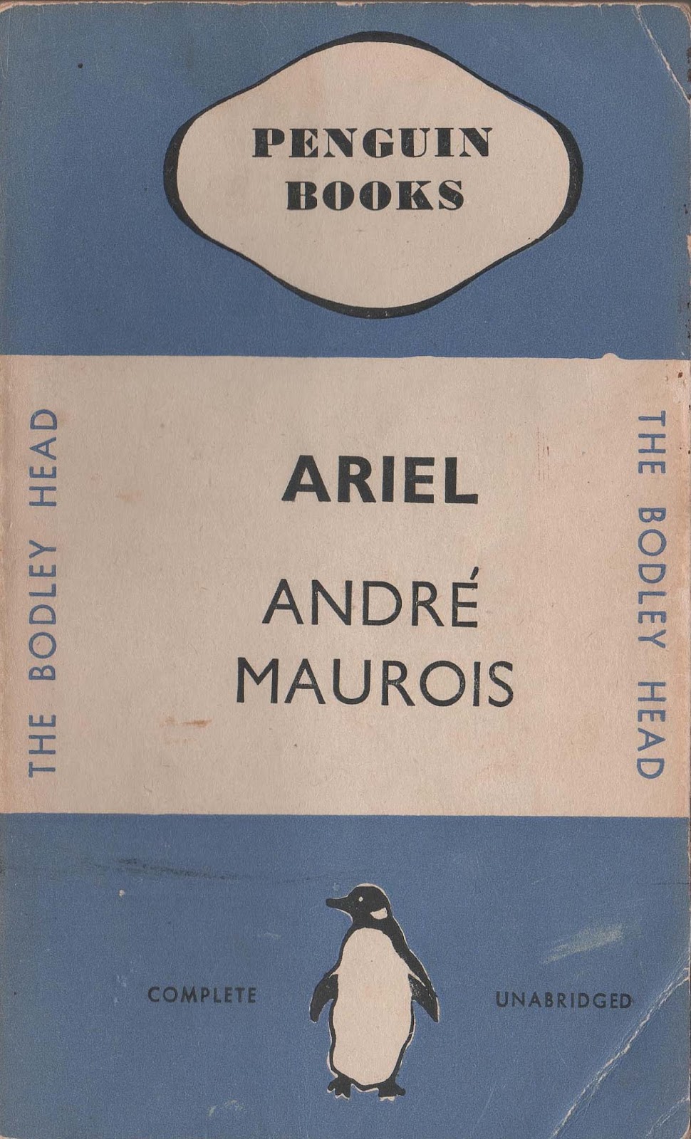 Ariel was Penguin #1. The English copyright was already conveniently held by The Bodley Head. The copyright of six of the ten first Penguins was held by the publisher Jonathan Cape, a good friend of Allen Lane. He is famously quoted by his biographer Michael S Howard as saying that he was certain that the Penguin venture would fail, and so thought that he would take 400 pounds from Allan Lane for the copyrights, before Penguin was declared to be bankrupt.
